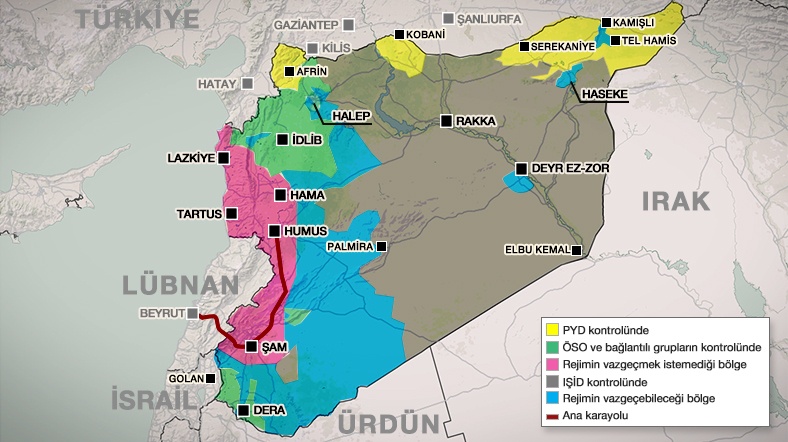 Esed rejimine yakın bazı yetkililer, ordunun ‘kullanışlı Suriye’ye çekilmesinden söz etmeye başladı. İsminin açıklanmaması kaydıyla AFP’ye konuşan rejime yakın bir siyasetçi, ‘Suriye’nin bölünmesi kaçınılmaz. Rejim sahil bölgelerini, iç kesimlerdeki Hama ve Humus kentlerini ve başkent Şam’ı kontrolünde bulundurmak istiyor’ dedi.