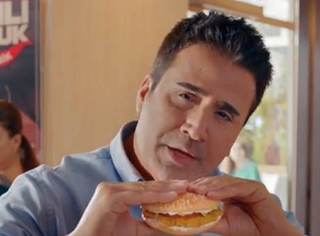 Şarkıcı Emrah, bir hamburger firması için objektif karşısına geçmiş ve 'Küçük Emrah' suratını takınmıştı.
