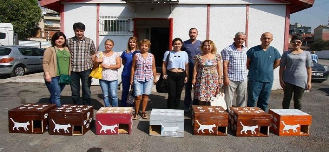 Bayraklı Belediyesi Dünya Hayvanları Koruma Gününde, yerel hayvan hakları koruma görevlilerine seçim sandığından dönüştürülen kedi evlerini hediye etti.