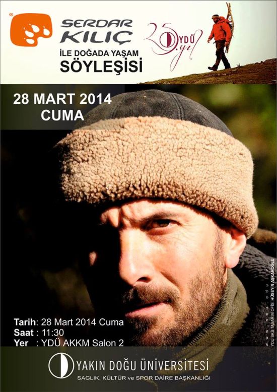 Doğaseverlerin ilgiyle izledikleri vahşi doğada yaşamı konu alan televizyon programıyla tüm Türkiye'nin tanıdığı Serdar Kılıç, söyleşi yapmak üzere Yakın Doğu Üniversitesi 25. Yıl Kutlamaları çerçevesinde Kuzey Kıbrıs Türk Cumhuriyeti'ne geliyor.