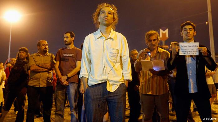 Performans sanatçısı Erdem Gündüz Gezi Parkı'na yapılan polis müdahalesini protesto etmek için dün, 8 saat Taksim Meydanı'nda sabit bir biçimde durdu. Şüphelenen bir kişinin ihbarı üzerine polislerin üzerini aradığı Gündüz, protestosuna devam etmeyi sürdürdü.