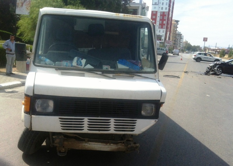 Öğle saatlerinde Gazimağusa istikametinden Yeniboğaziçi'ne seyir halinde gitmekte olan FP 476 plakalı van araca tali yoldan dikkatsiz bir şekilde çıkış yapan kiralık araç ortalığı savaş alanına çevirdi.