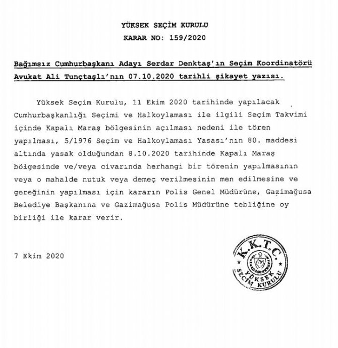 HABERLERKIBRISKIBRISYSK'dan Kapalı Maraş Duyurusu08 Ekim 2020 Perşembe 10:43YSK'dan Kapalı Maraş Duyurusu