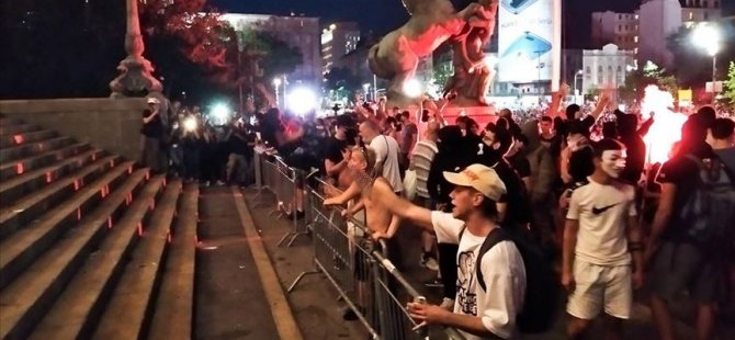 Bu arada, Anadolu Ajansının (AA) protestoları takip eden serbest foto muhabiri Milos Miskov da göstericilerden attığı tuğla parçasının başına isabet etmesiyle yaralandı. Acil servise kaldırılan Miskov’un sağlık durumun iyi olduğu bildirildi.