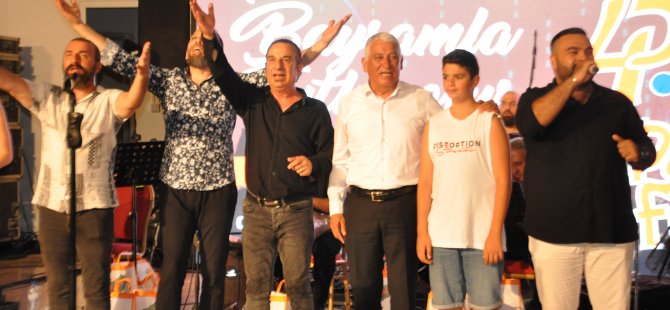 Güzelyurt Belediye Başkanı Mahmut Özçınar gecenin organizasyonunu gerçekleştiren Kazım Özalp’a ve SOS Müzik Grubu adına Mehmet Özçelik’e plaket takdim etti.