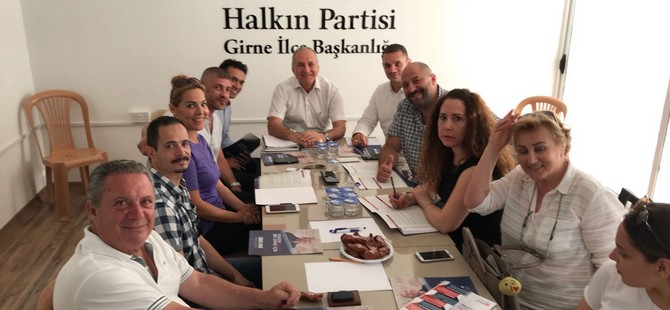 Halkın Partisi Girne Belediye meclisi adayları ve vekilleri ile bir araya gelen Aygın, yaklaşık üç saat süren görüşmedeGirne’nin sorunlarının çözülmesi ve yeni çağdaş projelerle yaşanılabilir bir Girne için ne yapılabileceği konuları üzerinde karşılıklı bilgi alışverişinde bulundu.