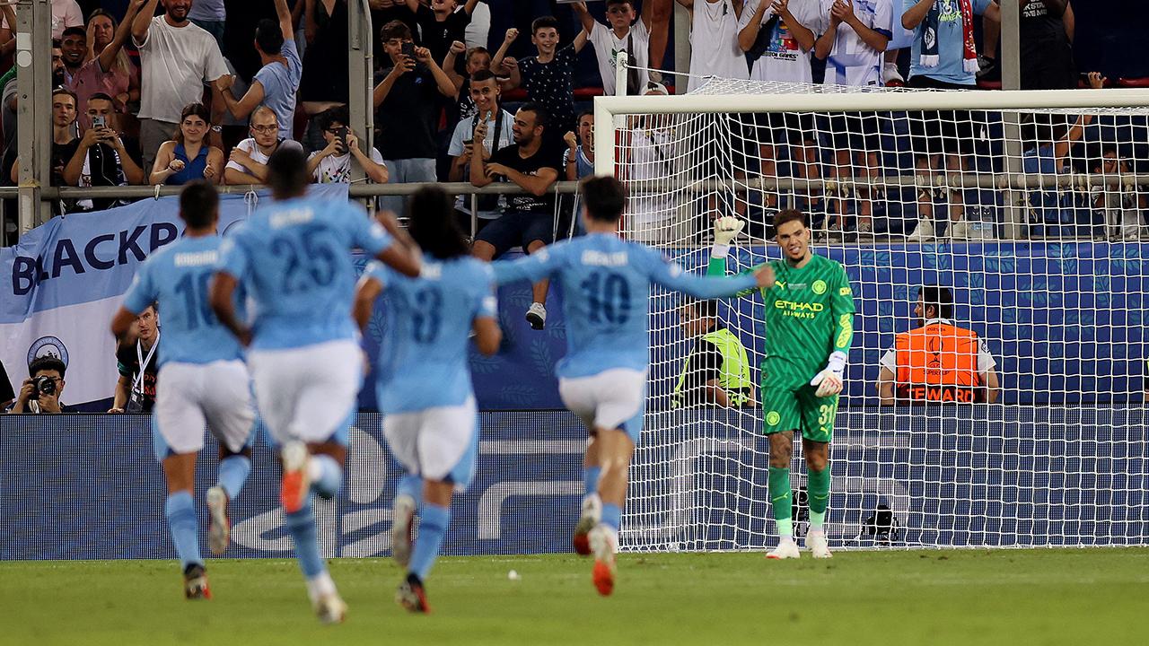 Manchester City'de Haaland, Alvarez, Kovacic, Grealish, Walker; Sevilla'da Ocampos, Rafa Mir, Rakitic, Montiel penaltıları golle sonuçlandırdı. İspanya temsilcisinde Gudelj'in penaltısı direkten döndü ve rakibini 5-4 mağlup eden Manchester City, kupanın sahibi oldu.