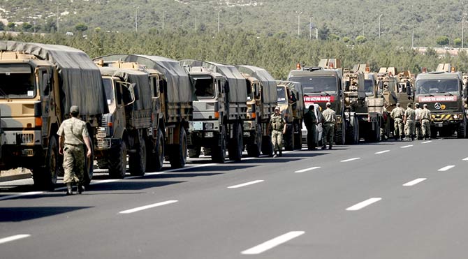 Gaziantep’ten Suriye sınırına doğru hareket eden askeri konvoy Kilis’e vardı. Çok sayıda zırhlı araç bulunan konvoya polis ekipleri de eşlik etti. Elbeyli ilçesindeki Şehit Mehmet Hudut Karakolu’na getirilen zırhlı araçlar sınır hattında belirlenen noktalara konuşlandırılacak.