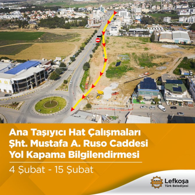Şht. Mustafa A. Ruso Caddesi’ni Lefkoşa şehir merkezi istikametinde kullanacak araç sürücüleri, köprü yanından geçici oluşturulacak servis yolunu kullanarak şehir merkezi ve içerisine ulaşabileceklerdir.