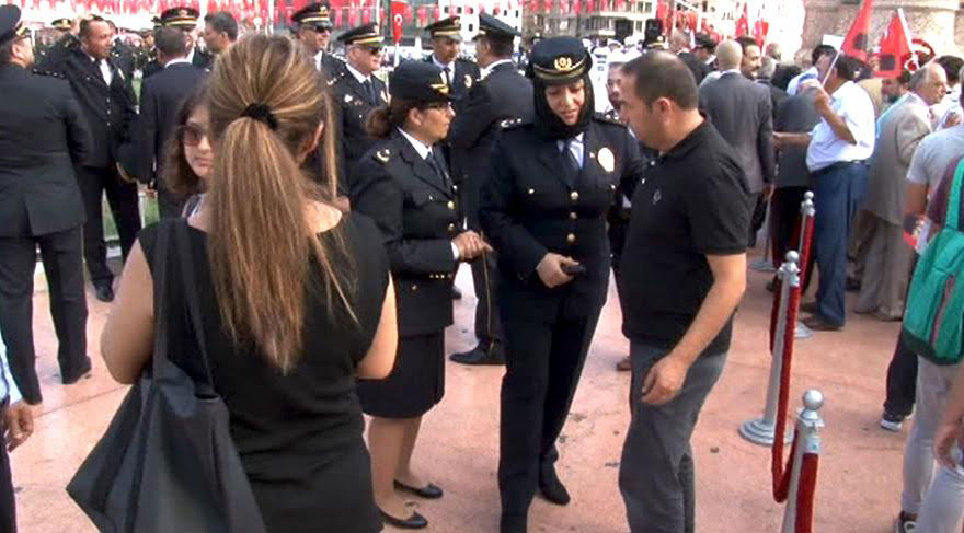 30 Ağustos Zafer Bayramı Taksim Meydanı’da düzenlenen törenle kutlandı. Törende bir ilk de yaşandı. Emniyet Hizmetleri Sınıfı Mensupları Kıyafet Yönetmeliğinde yapılan değişiklikle kadın polislerin başörtüsü kullanmasının serbest hale gelmesinin ardından bir kadın emniyet müdürü, törene başörtüsüyle katıldı.