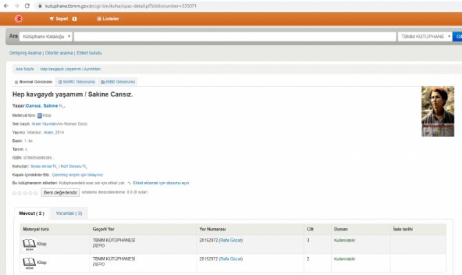 "Kullanılabilir” durumda olan kitabın geçerli yerinin ise “TBMM Kütüphanesi Depo” olarak kayıt edildiği göze çarptı.