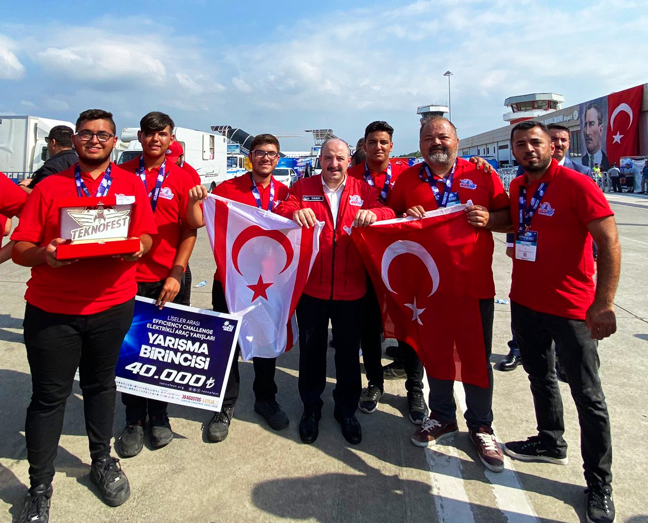 TEKNOFEST 2022’de “İLKE” ismini verdikleri araçları ile Uluslararası Efficiency Challenge Elektrikli Araç Yarışları ve Liseler Arası Efficiency Challenge Elektrikli Araç Yarışları’nda birincilik elde eden Sedat Simavi Endüstri Meslek Lisesi (SSEML) ödüllerini, Türkiye Cumhurbaşkanı Erdoğan’ın elinden aldı.