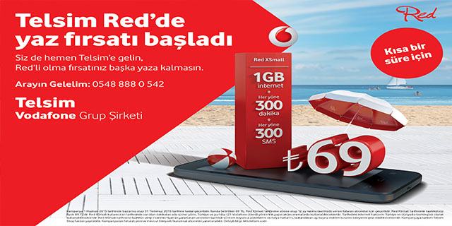 Yaza özel Red kampanyası kapsamında avantajlı fiyatlarla dilediği kadar konuşan, mesajlaşan ve internet paketinden faydalanan Telsimliler, ayda sadece 69 TL karşılığında RED Xsmall tarifesi kapsamında; Türkiye ve dünyada geçerli 1 GB internet paketi her yöne 300 dakika (Adaiçi her yöne, Türkiye ve 21 Vodafone ülkesi yönüne) ve her yöne 300 SMS hakkına sahip oluyor.
