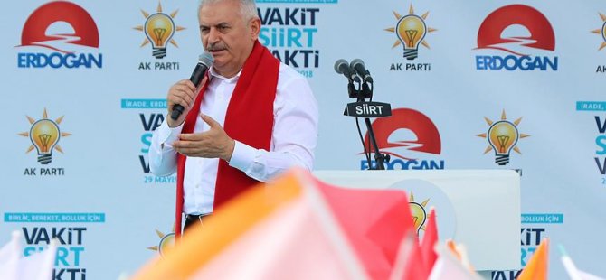 AK Parti Genel Başkanvekili ve Başbakan Binali Yıldırım, partisinin Siirt Kent Meydanı'nda düzenlenen mitinginde yaptığı konuşmasına, "Size Cumhurbaşkanımızın, Türkiye sevdalısı liderimizin, eniştenizin, Recep Tayyip Erdoğan'ın selamını getirdim" diyerek başladı.