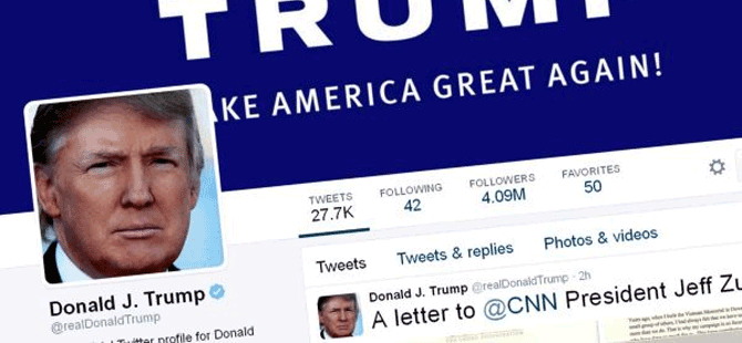 Donald Trump'ın başkanlık döneminde uygulamayı planladığı politikalara ilişkin açıklamlarının yanı sıra politikacılar ve gazetecilerle polemiklere girdiği @realDonaldTrump hesabının 20 milyonun üstünde takipçisi var.
