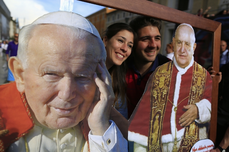 Törene 24 devlet başkanı ve kraliyet ailesi temsilcisi, 10 başbakan, 40 bakan ve bakan yardımcısı olmak üzere toplam 122 yabancı yetkili de katıldı. İki papanın birden aziz ilan edilmesi Vatikan tarihinde ilk kez gerçekleşti. Her iki Papa’nın aziz ilan edilmesi için geleneksel süreçte istisna yapıldı.