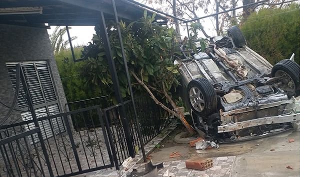 Turunçlu’da öğle saatlerinde meydana gelen trafik kazasında, araç takla atarak evin bahçesine girdi. Korkutan kazada ciddi yaralanma olmadığı öğrenildi.