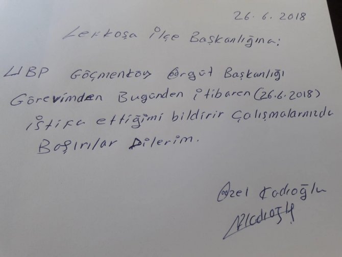 İstifa sebebinin UBP Genel Başkanı Hüseyin Özgürgün'e ve LTB seçim sonuçlarına bir tepki olduğu konuşuluyor.