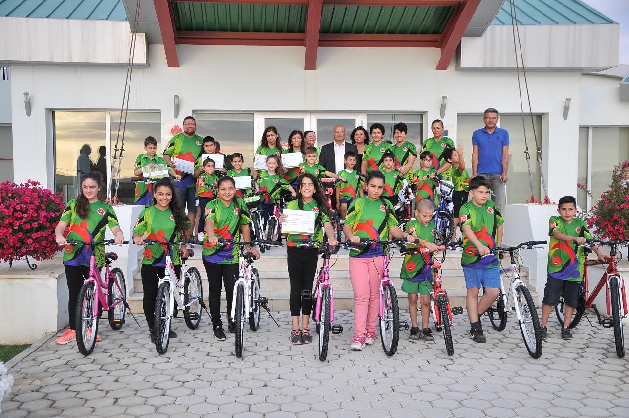 “Bisikletli Gönyeli Kursu”nu tamamlayan çocuk ve yetişkinlere, katılım belgeleri ve hediye olarak çocuklara bisikletleri verildi.