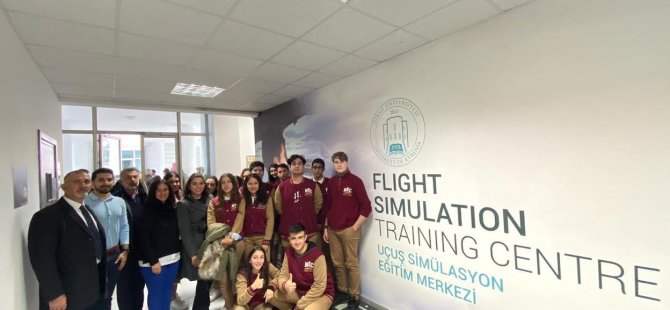 İlk olarak Pilotaj ve Uçak Mühendisliği Bölümünü gezen öğrenciler Uçuş Simülasyonunda uçağın kokpitini inceleyerek, uçuş simülatörünü kullandı. Öğrenciler simülatör eşliğinde Havalimanından kalkış yapıp, uçak kontrol sistemlerini kullanarak gerçekçi bir uçuş deneyimi yaşadı. Gerçek bir kokpit ortamını, acil durum adımlarının nasıl yapıldığını, uçağın nasıl güvenle uçurulduğunu ve yere indirildiğini, uçaktaki bazı materyallerin isimlerini öğrendiler.