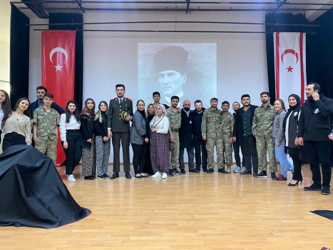 18 Mart Çanakkale Zaferi ve Şehitleri Anma Günü programı, Türkçe Öğretmenliği Bölümü öğrencilerinden Emircan Semiz, Mustafa Yıldırım, Osman Taş, Hasan Tekmenuray, Alişan Ötkün, Abdulsamet Kulak, Yakup Sözeri, Serhat Kılıç, Fatma Çapur, Merve Çapan, Ayşenur Köleoğlu, Emine Timur, Arda Topaloğlu ve Mustafa Cihat ile Türk Dili ve Edebiyatı Bölümü öğrencisi İrem Tucel’in oynadıkları ve büyük beğeni toplayan tiyatro gösterisi ile sona erdi.