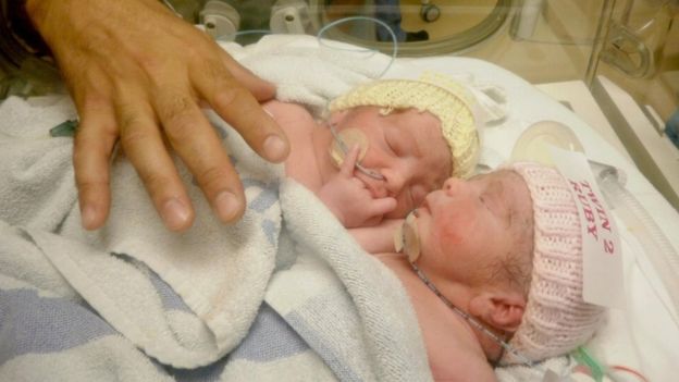Kızlar Londra'daki University College Hospital UCH'de, anneleri 34 haftalık hamileyken sezaryenle dünyaya geldi.