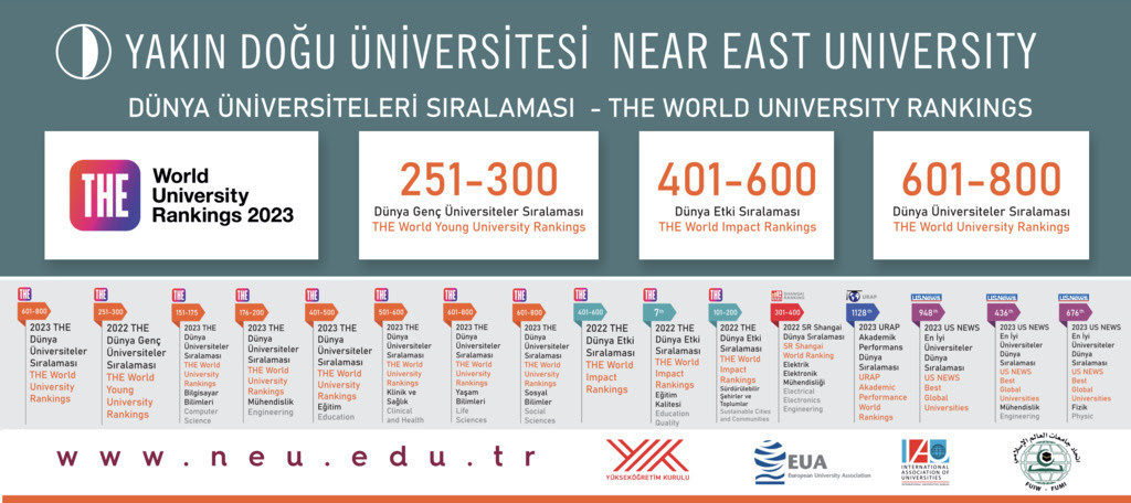 Dünyanın en etkili üniversitelerinin sıralandığı çalışmada, Yakın Doğu Üniversitesi, genel sıralamada 401-600 bandında yer aldı. “Eğitim Kalitesi”nde dünya genelinde 46, “Sürdürülebilir Şehir ve Toplumlar” kategorisinde 77’nci olan Yakın Doğu Üniversitesi; “Sağlık ve Refah” kategorisinde 301-400, “Hedefler İçin Ortaklıklar” kategorisinde ise 801-1000 bandında yer aldı.