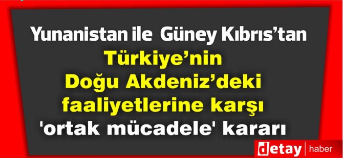 Yunanistan ve Kıbrıs’ın, Türkiye’nin Doğu Akdeniz’deki “yasa dışı” faaliyetine ve Gazimağusa’daki (Famagusta) kapalı alanın (Maraş) açılması planına karşı ortak mücadele kararı aldığı belirtildi.