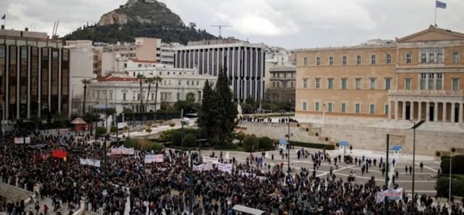 Yunanistan'da en az 57 kişinin hayatını kaybettiği tren kazasını protesto etmek amacıyla on binlerce çalışan bugün greve gitti.