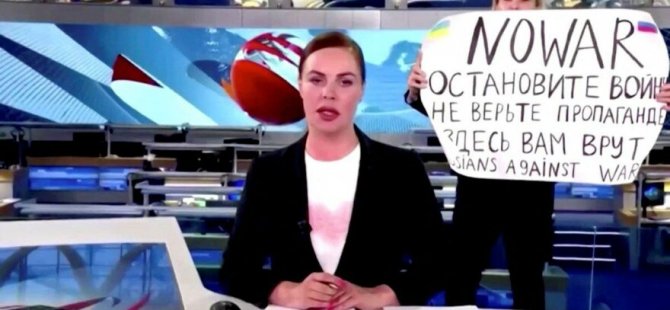 Devlet televizyonunun canlı y ayını sırasıdna elinde İngilizce olarak “SAVAŞA HAYIR” yazan ve altında da Rusça olarak, “Savaşı durdurun. Propagandaya inanmayın. Size yalan söylüyorlar” diye medya mensubu bütün dünyadan takdir topladı.