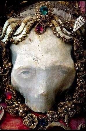 Her iskelet giydirilmiş ve pahalı kıyafetler, taçlar, silahlar ve hatta peruk gibi çeşitli çok değerli objeler ve taşlarla süslenmiş durumda bulunuyor.