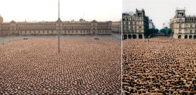 Spencer Tunick isimli fotoğrafçı, binlerce insanı bir araya topladıktan sonra çıplak fotoğraflarını çekip bu fotoğrafları tartışmalı sanat eserlerine dönüştürüyor. Sanatçının fotoğraflarına bakanlar çıplak insanlara değil resmin tamamına odaklanıyor.
