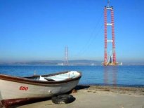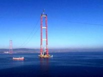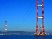Hizmete girdiğinde dünyanın en büyük orta açıklıklı asma köprüsü unvanını alacak, renkleri, figürleri ve diğer özellikleriyle özgün mimariye sahip 1915 Çanakkale Köprüsü'nün inşası sürüyor.