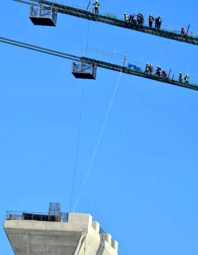 Çanakkale Boğazı'nın Avrupa ve Asya yakalarını birleştirecek "1915 Çanakkale Köprüsü"nün ayaklarının yüksekliği, Fransa'nın başkenti Paris'in simgesi 300 metrelik Eyfel Kulesi'ni geçti.