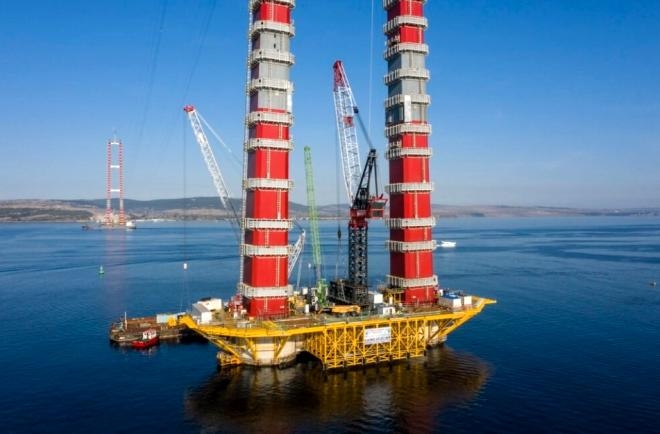 Çanakkale Boğazı'nın Avrupa ve Asya yakalarını birleştirecek "1915 Çanakkale Köprüsü"nün ayaklarının yüksekliği, Fransa'nın başkenti Paris'in simgesi 300 metrelik Eyfel Kulesi'ni geçti.