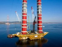 Çanakkale Boğazı'nın Avrupa ve Asya yakalarını birleştirecek "1915 Çanakkale Köprüsü"nün ayaklarının yüksekliği, Fransa'nın başkenti Paris'in simgesi 300 metrelik Eyfel Kulesi'ni geçti.