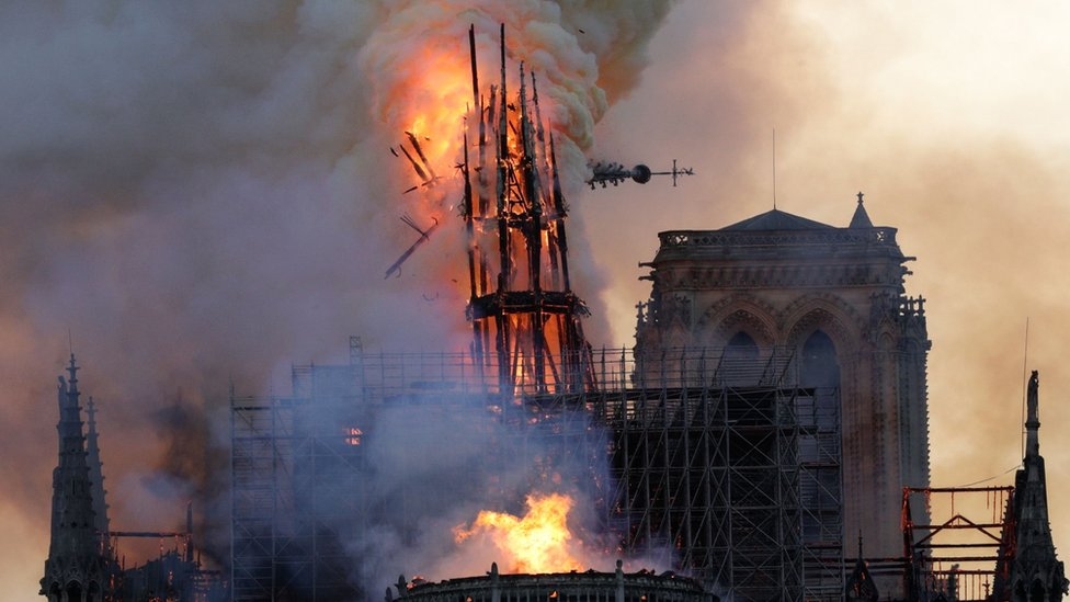 Katedralde 15 Nisan günü büyük bir yangın çıktı. Saatlerce süren yangın, 400'e yakın itfaiye görevlisinin müdahalesine rağmen uzun süre söndürülemedi.