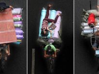 Tekstilin hammadeleri bir mağazadan diğerine ya da üretim yerinden satış noktasına bu 3 tekerlekli bisikletler vasıtasıyla ulaştırılıyor.