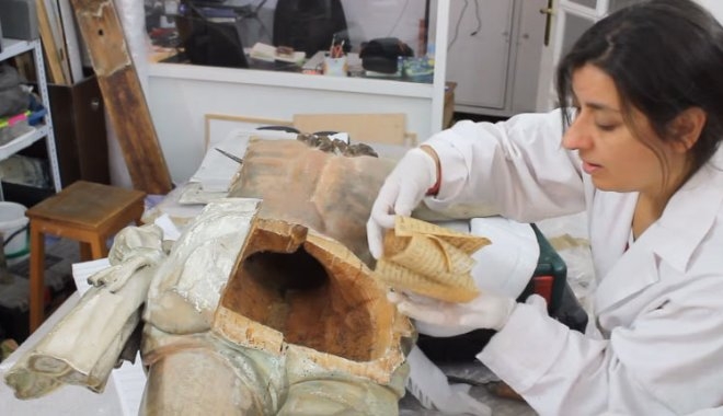 On sekizinci yüzyıla ait İsa heykeli üzerinde çalışan İspanyol restoratörler, heykelin kalçasında rahiplerin gizlediği bir not buldu.