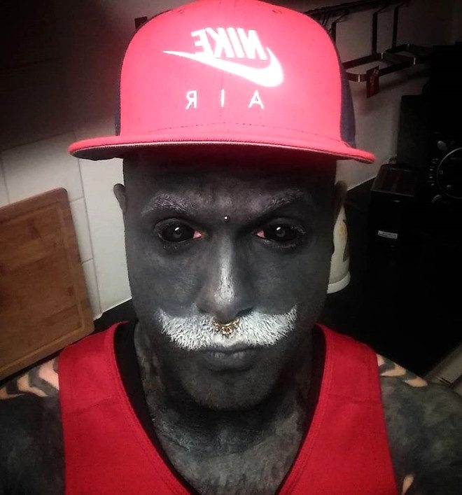 Kansere yakalandıktan sonra dövme bağımlısı olan ve tüm bedenini siyaha boyatan 32 yaşındaki Adam Curlykale, estetik zevkine uymadığı için erkeklik organını aldırdı.