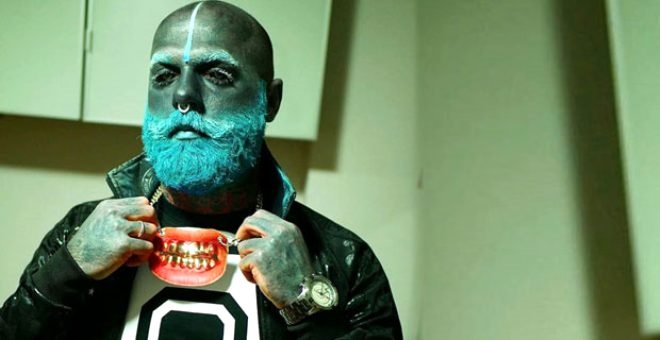 Kansere yakalandıktan sonra dövme bağımlısı olan ve tüm bedenini siyaha boyatan 32 yaşındaki Adam Curlykale, estetik zevkine uymadığı için erkeklik organını aldırdı.