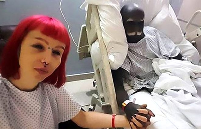 Kansere yakalandıktan sonra dövme bağımlısı olan ve tüm bedenini siyaha boyatan 32 yaşındaki Adam Curlykale, estetik zevkine uymadığı için erkeklik organını aldırdı.