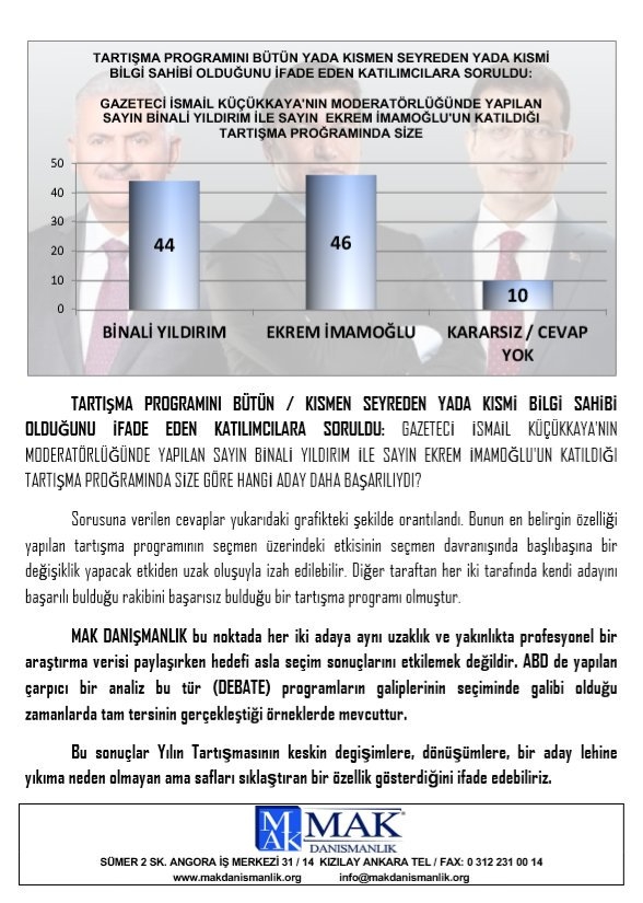 MAK Danışmanlık, 23 Haziran'da yapılacak İstanbul Büyükşehir Belediye Başkanlığı seçimi için yaptığı 33 bin kişilik anketi yayınladı.
