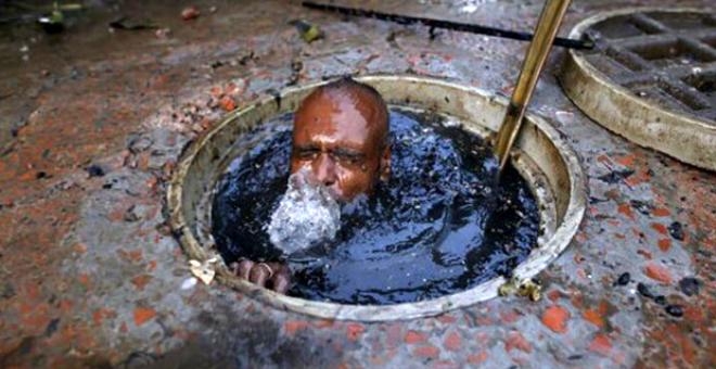 Bangladeş'in başkenti Dakka'nın yetersiz kanalizasyon sistemi nedeniyle tıkanan kanalları açmak için lağım temizleyicileri insan ve kimyasal atıkların içine dalıyor.