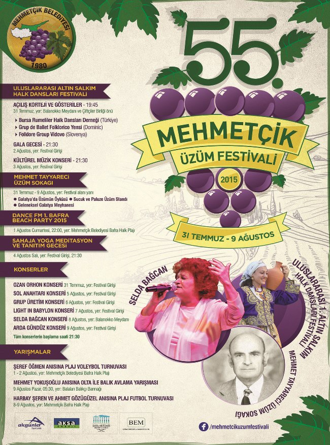 Üzümüyle tanınan Mehmetçik (Galatya) köyünde ve Mehmetçik Belediyesi’ne bağlı Bafra Halk Plajı’nda yer alacak etkinliklerin ilk etkinliği Balanakko Meydanı’nda Türkiye, Meksika, Slovenya ve Türkiye ekiplerinin dans gösterileri olacak. Ardından Türkiye’nin tanınmış pop müzik sanatçılarından Ozan Orhon konser verecek.