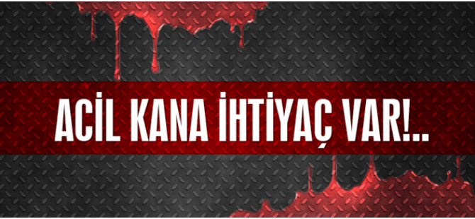 Mağusa Devlet Hastanesi'ndeki 1 hasta için 0 RH – (NEGATİF) kana ihtiyaç var. Verebilecek olanlar 0533 822 68 33 No.'lu telefondan ulaşabilir.