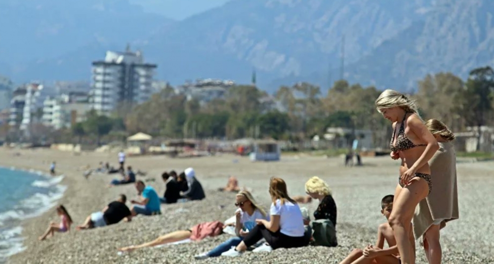 Antalya’da kısıtlamadan muaf tutulan turistler, Mart ayının son günlerinde denizin ve güneşin tadını çıkardı.