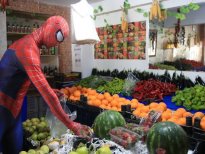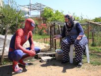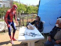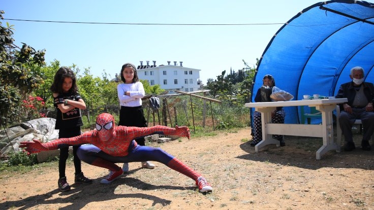 Antalya'da Spiderman (Örümcek Adam) kostümü giyen 27 yaşındaki Burak Soylu, korona virüsü nedeniyle evlerinden çıkamayanlara yardım ediyor.
