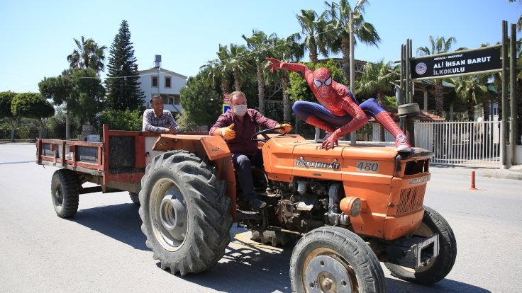 Antalya'da Spiderman (Örümcek Adam) kostümü giyen 27 yaşındaki Burak Soylu, korona virüsü nedeniyle evlerinden çıkamayanlara yardım ediyor.