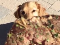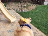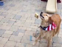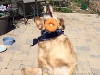 Sevimli köpek, bütün çabasına rağmen kendisine fırlatılan yiyeceklerin hiçbirini yakalayamadı.